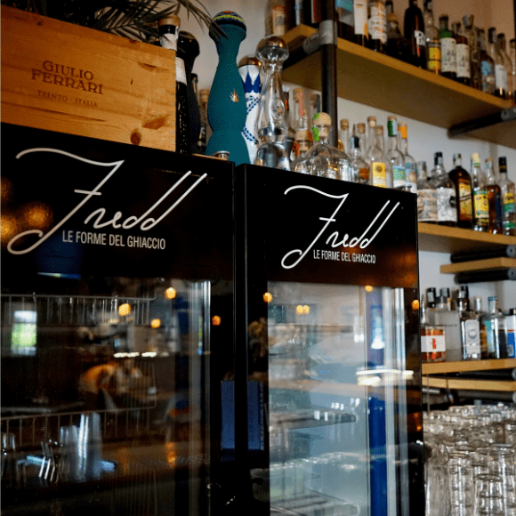 Freestyle is a customer of both Samot and Fredd; in fact, it buys ice shapes from Fredd, which it stores in the negative display cases right behind the bar; and it self-produces the classic cube and pilé formats thanks to the Hoshizaki ice maker rental contracted with Samot.